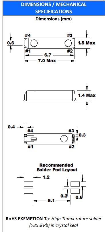 FSXLF,FSXLF327,7015mm,32.768kHz,FOX品牌,無源晶振,尺寸圖